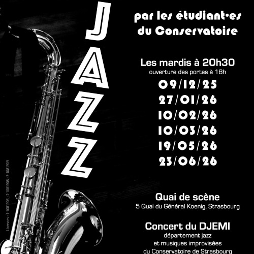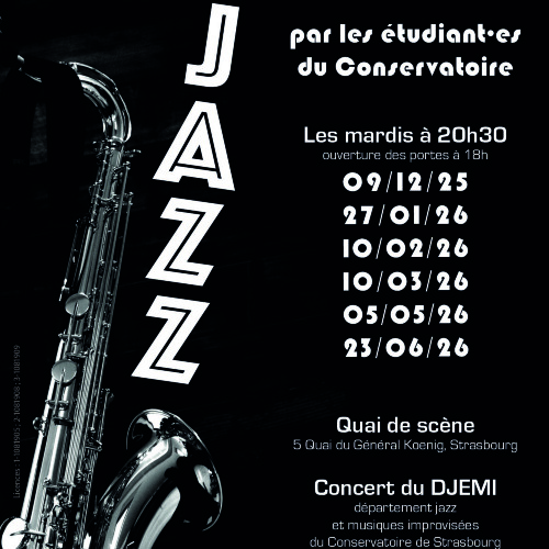 Plan anzeigenDans le cadre du Nid du Jazz, le Quai de scène accueille les étudiant·e·s du Conservatoire de Strasbourg pour des soirées exceptionnelles. Venez découvrir les talents d’aujourd’hui et de demain lors de ces concerts organisés par le département jazz et musiques improvisées.